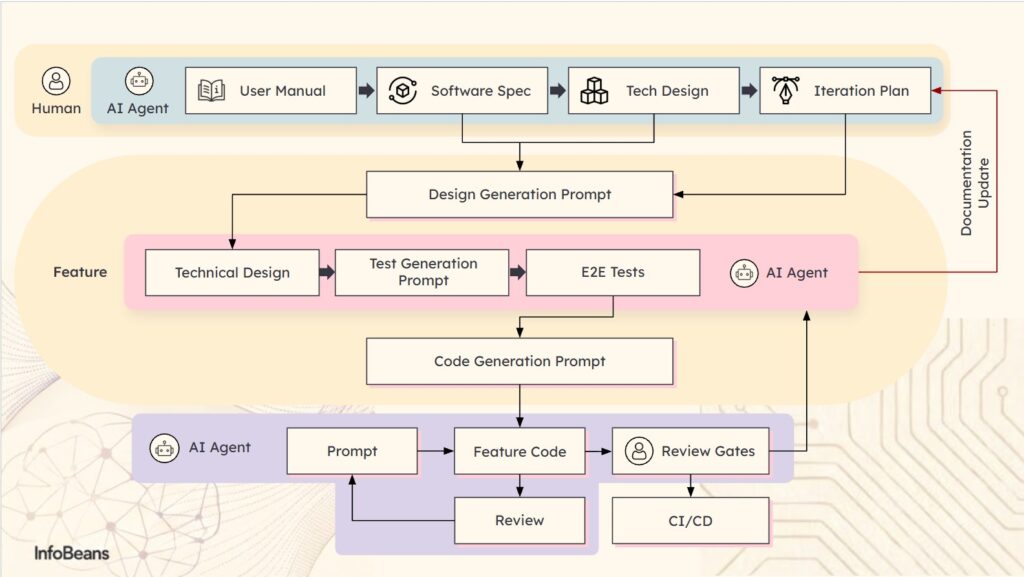 At InfoBeans, SDD embodies a mindset: Specs aren’t overhead, they’re the work that prevents building the wrong thing fast. By fusing engineering precision with product thinking (echoing PRDs, design docs, and lean streams), our Insane SDD Accelerator aligns business intent, UX, architecture, and delivery upstream.